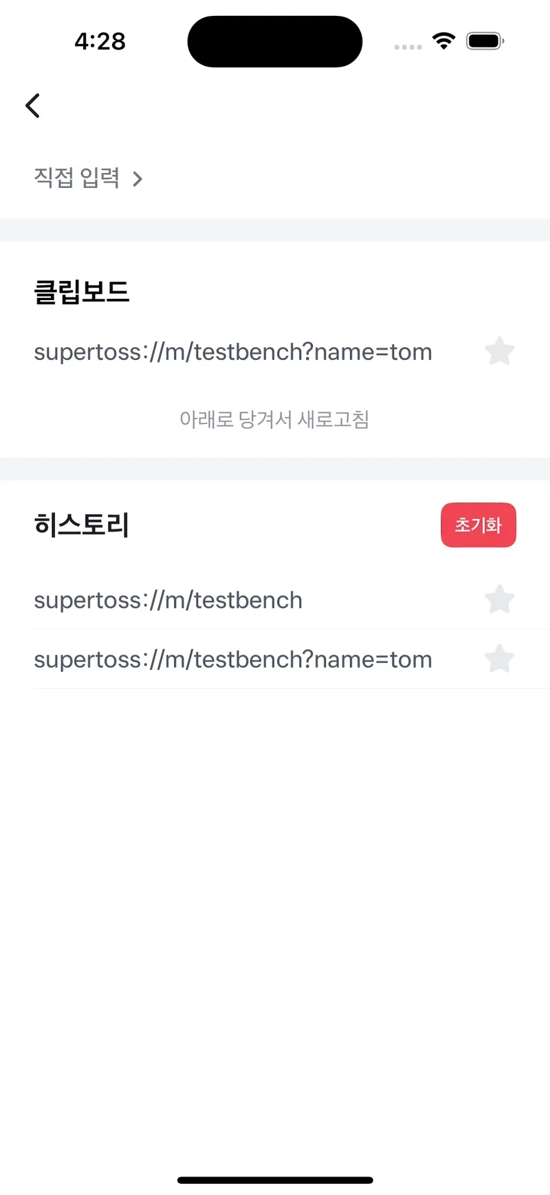 // URL 예시: intoss://test-app?name=tom&age=10&referer=https://google.com
