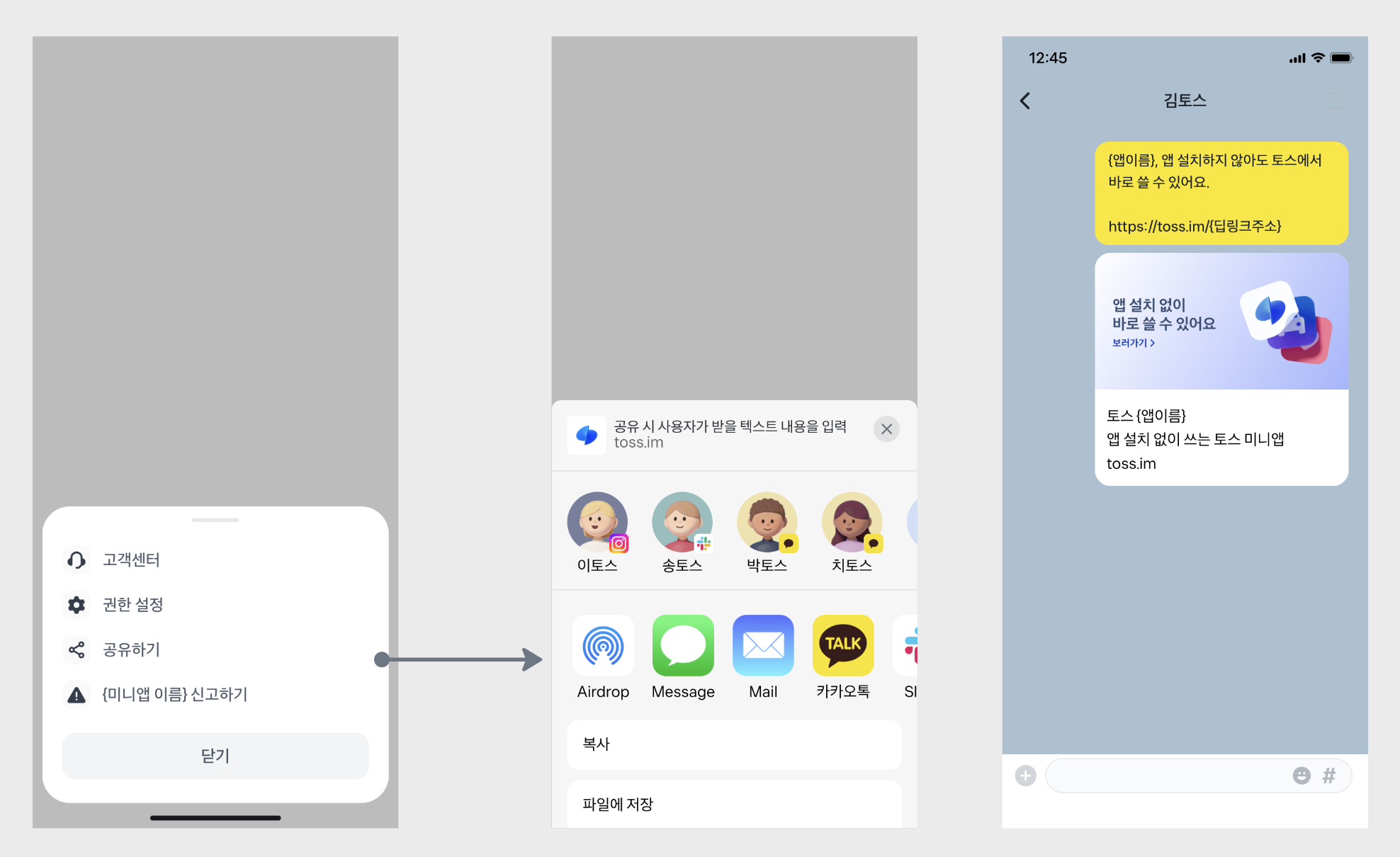공유하기 기능을 통해 사용자는 미니앱을 다른 사람에게 쉽게 공유할 수 있어요.