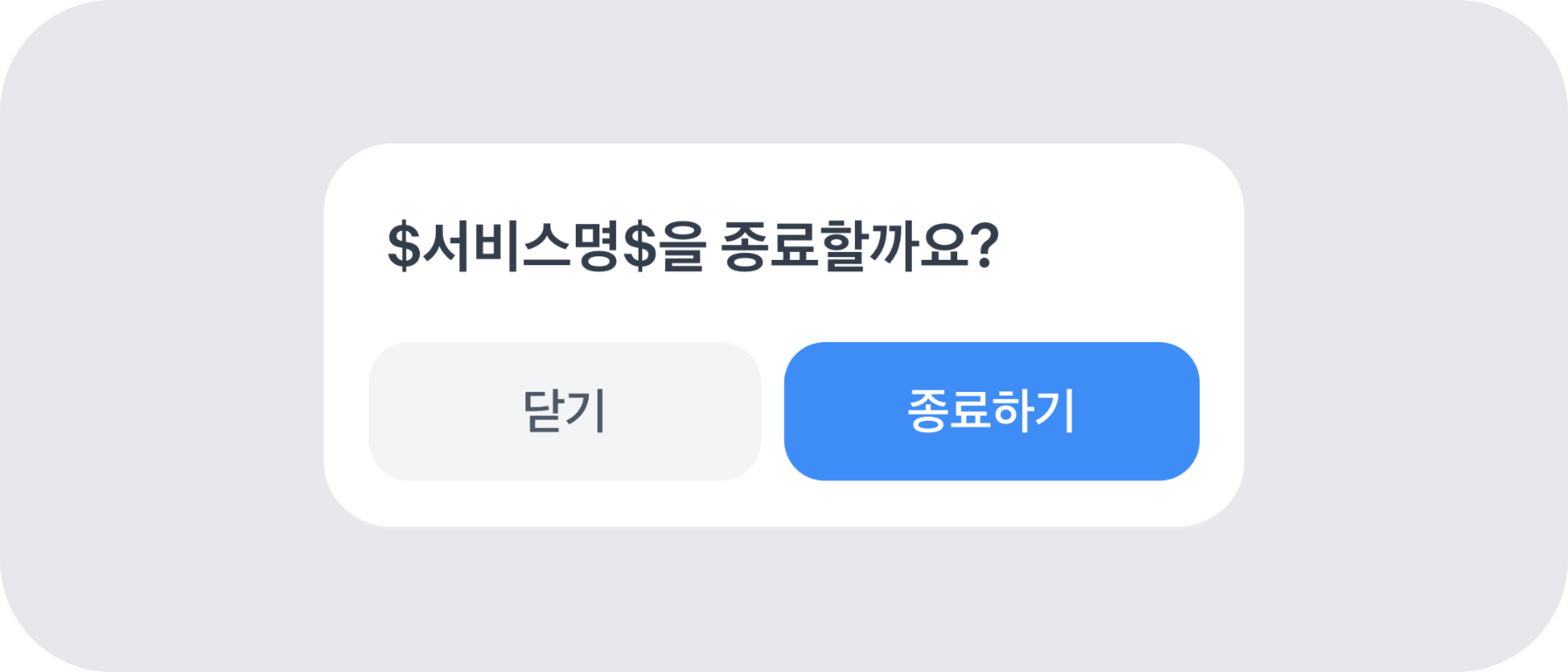 - 종료 시 종료한다는 것에 대한 확인 모달은 필수로 사용해 주세요.