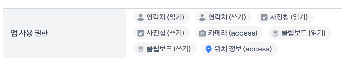개발한 미니앱에서 사용되는 권한들에 대한 내용이에요.