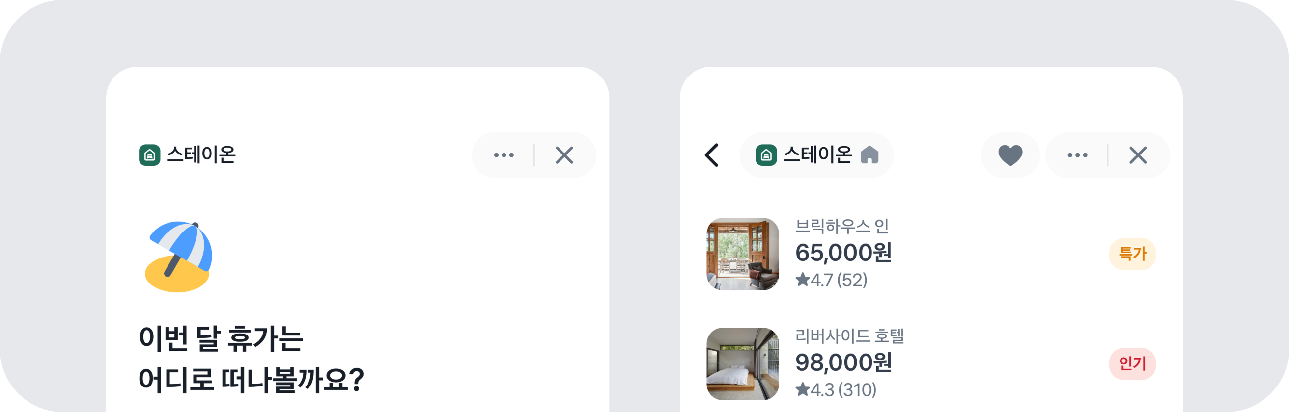 홈 버튼 | 선택 - 미니앱 서비스의 홈으로 가는 진입점이 필요한 경우 사용해요. | |