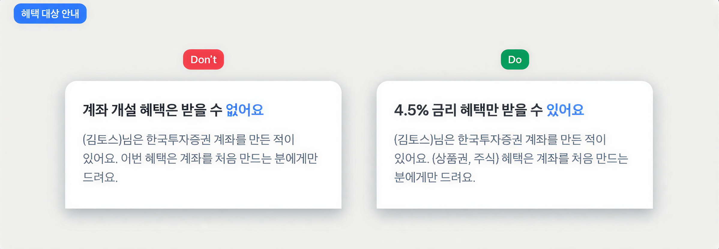본 가이드라인은 토스 앱의 보이스톤을 적용한 문구를 쓸 수 있도록 제공된 지침이에요.