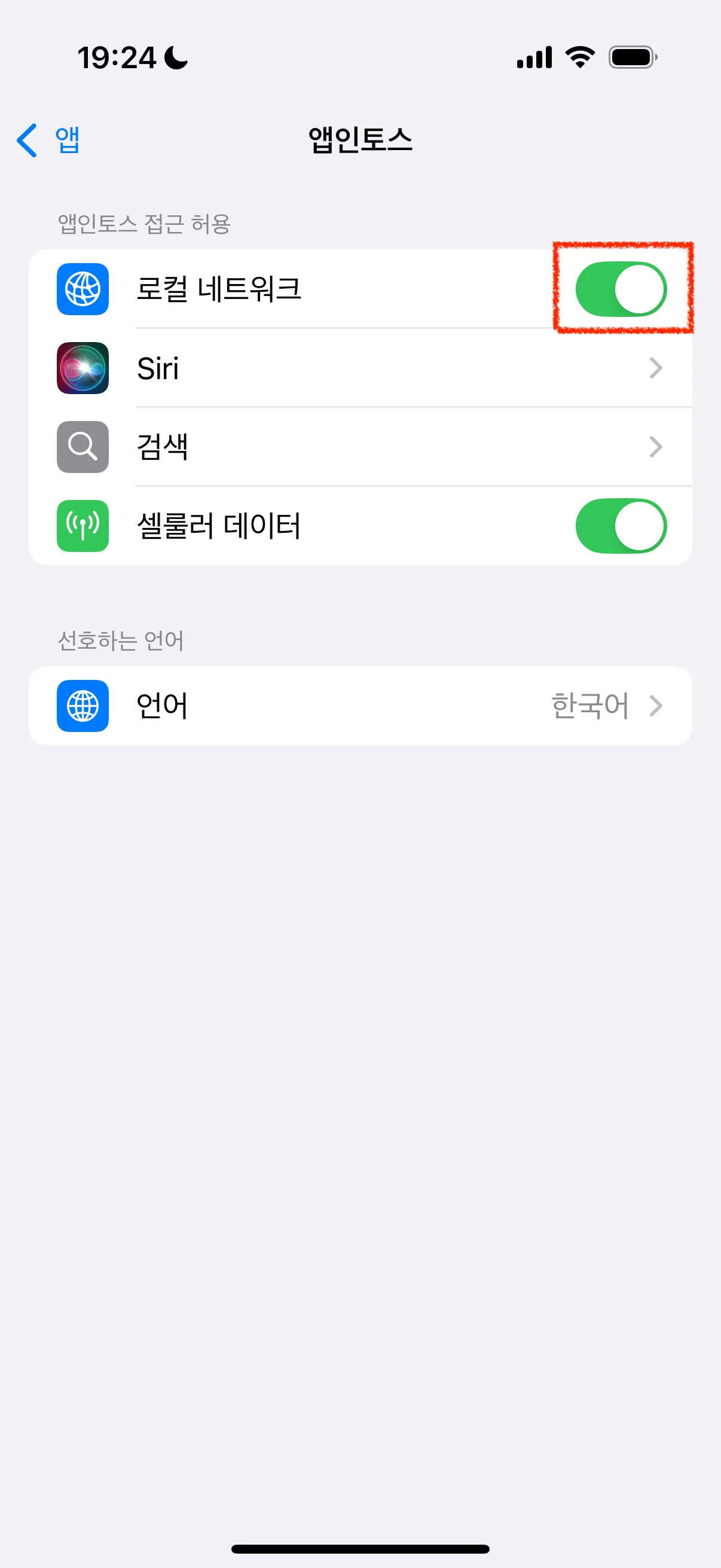 - "로컬 네트워크" 옵션을 찾아 켜주세요.