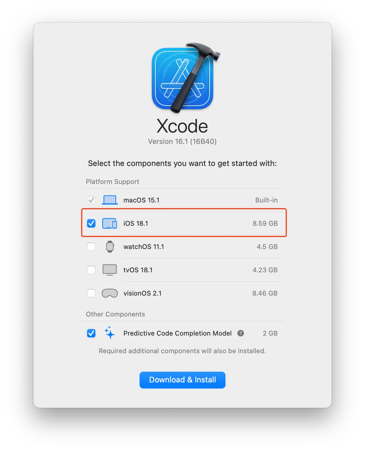 Xcode를 처음 설치한 경우, iOS 시뮬레이터를 사용하려면 iOS 15 이상의 컴포넌트를 추가로 설치해야 해요.