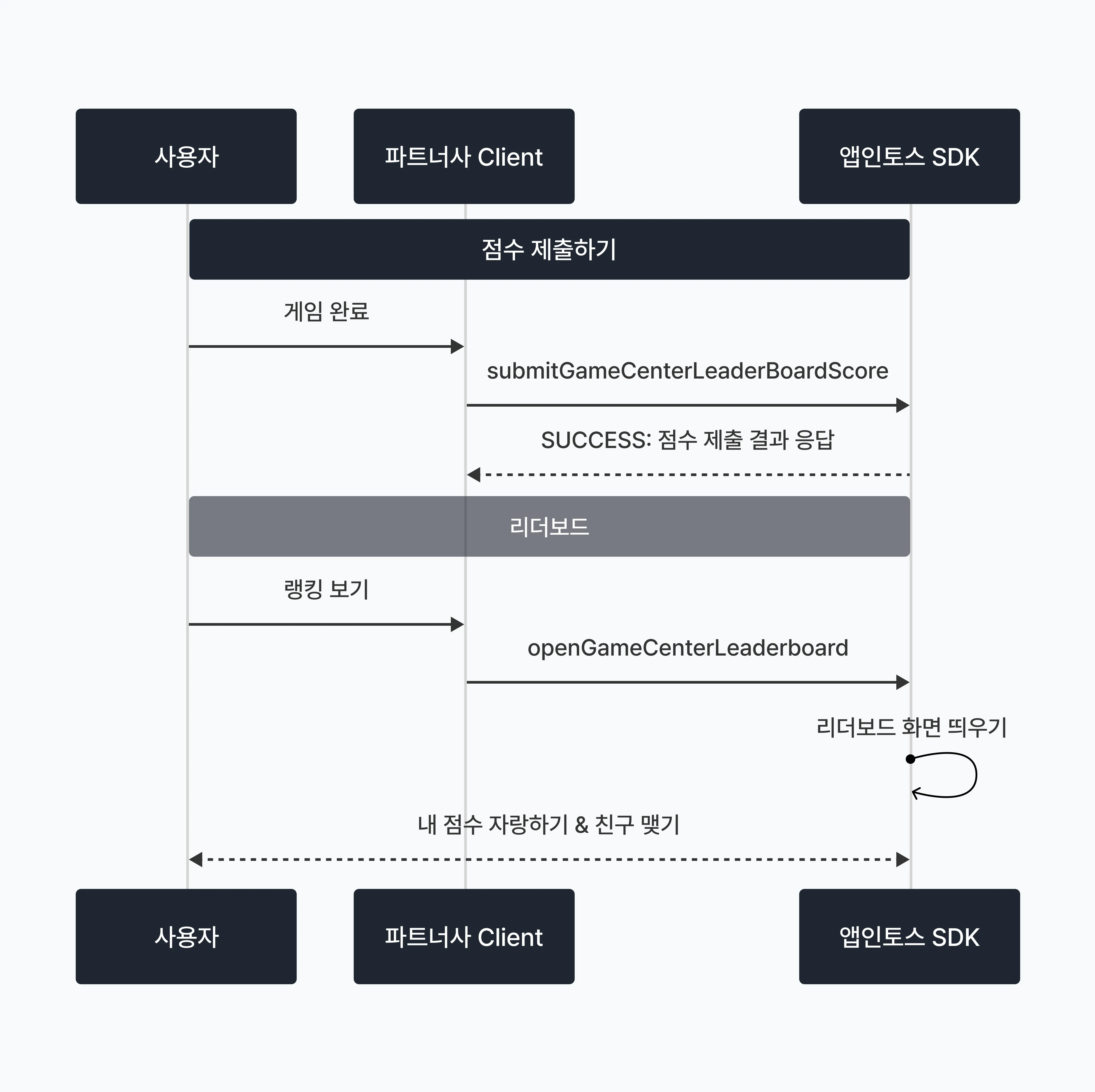 게임 리더보드 개발 문서의 submitGameCenterLeaderBoardScore 페이지를 확인해주세요.