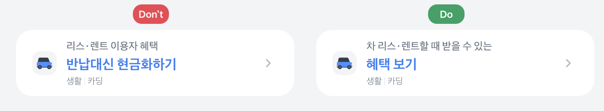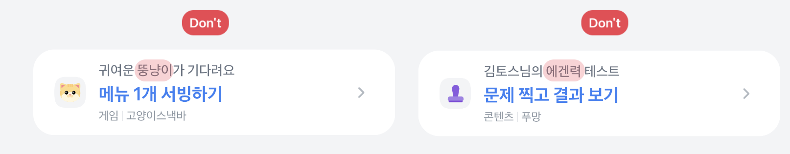 상단 문구는 '~하기'가 아닌 다른 형태