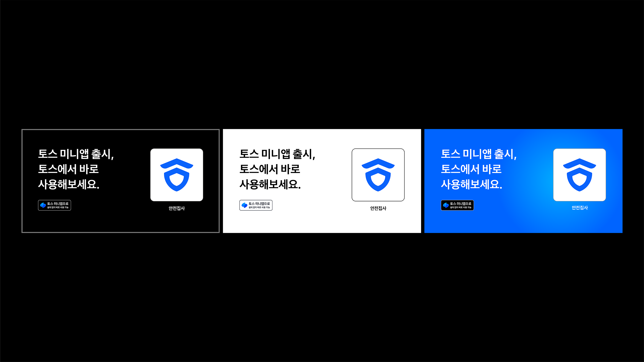 - 레이아웃 또는 동영상 당 하나의 ‘토스 미니앱 배지’를 사용 가능해요. 배지가 중심 아트워크가 되지 않도록 앱 이미지 또는 주요 메시지의 하위에 배치하며, 배지를 수정하거나, 각도를 바꾸거나, 애니메이션 효과를 넣으면 안돼요.