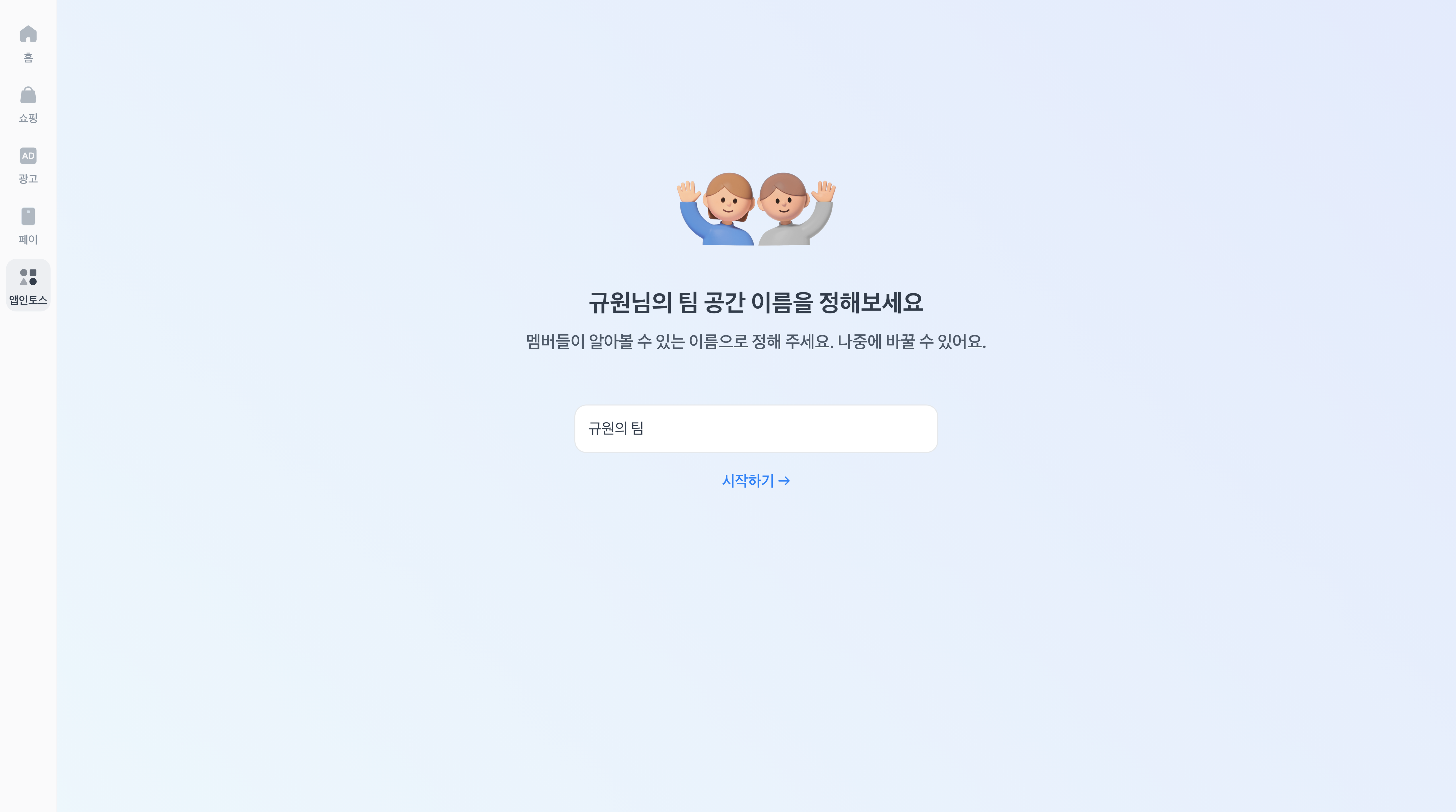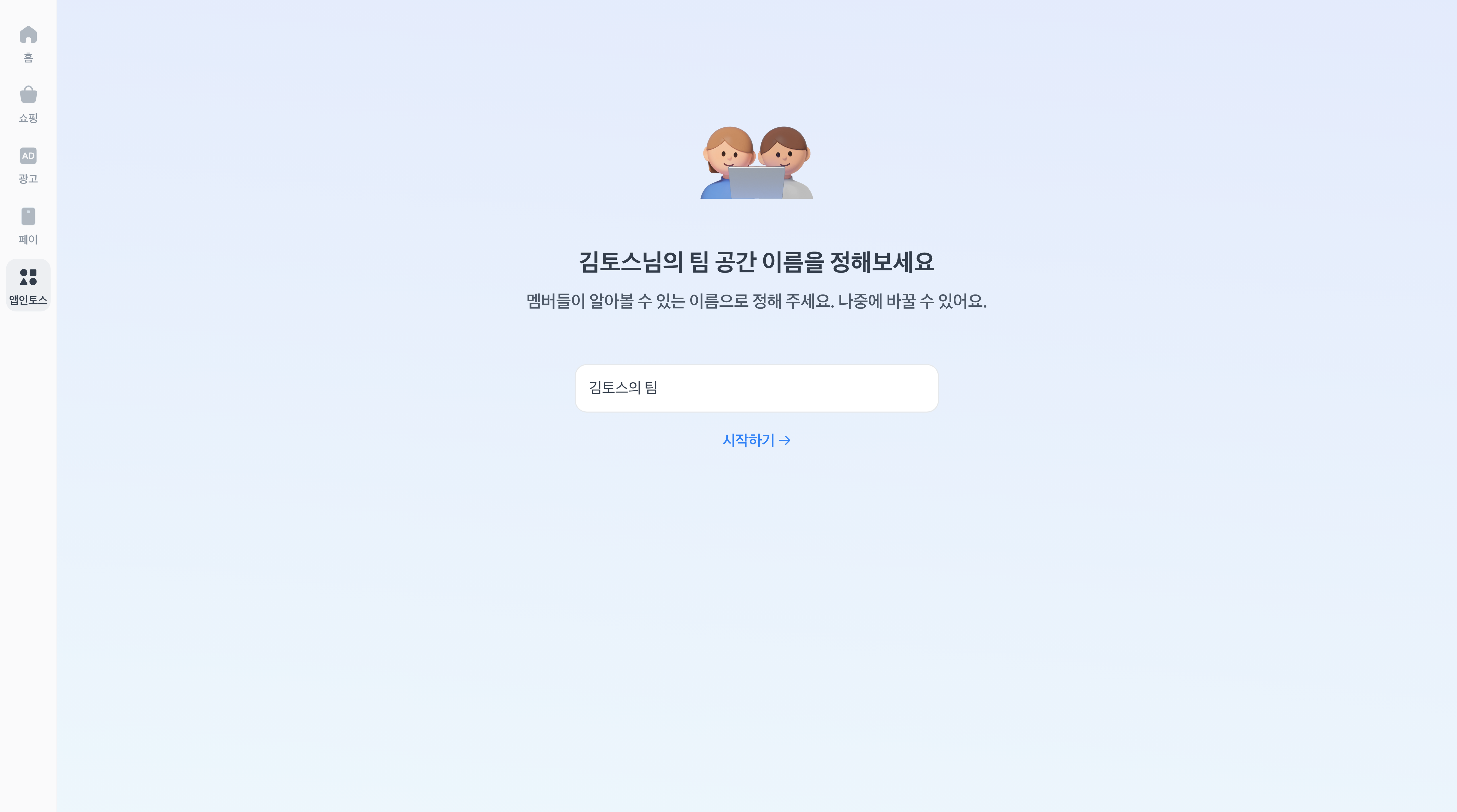 팀이나 프로젝트 이름처럼 쉽게 알아볼 수 있는 이름을 붙여 주시고, 나중에 수정할 수 있어요.