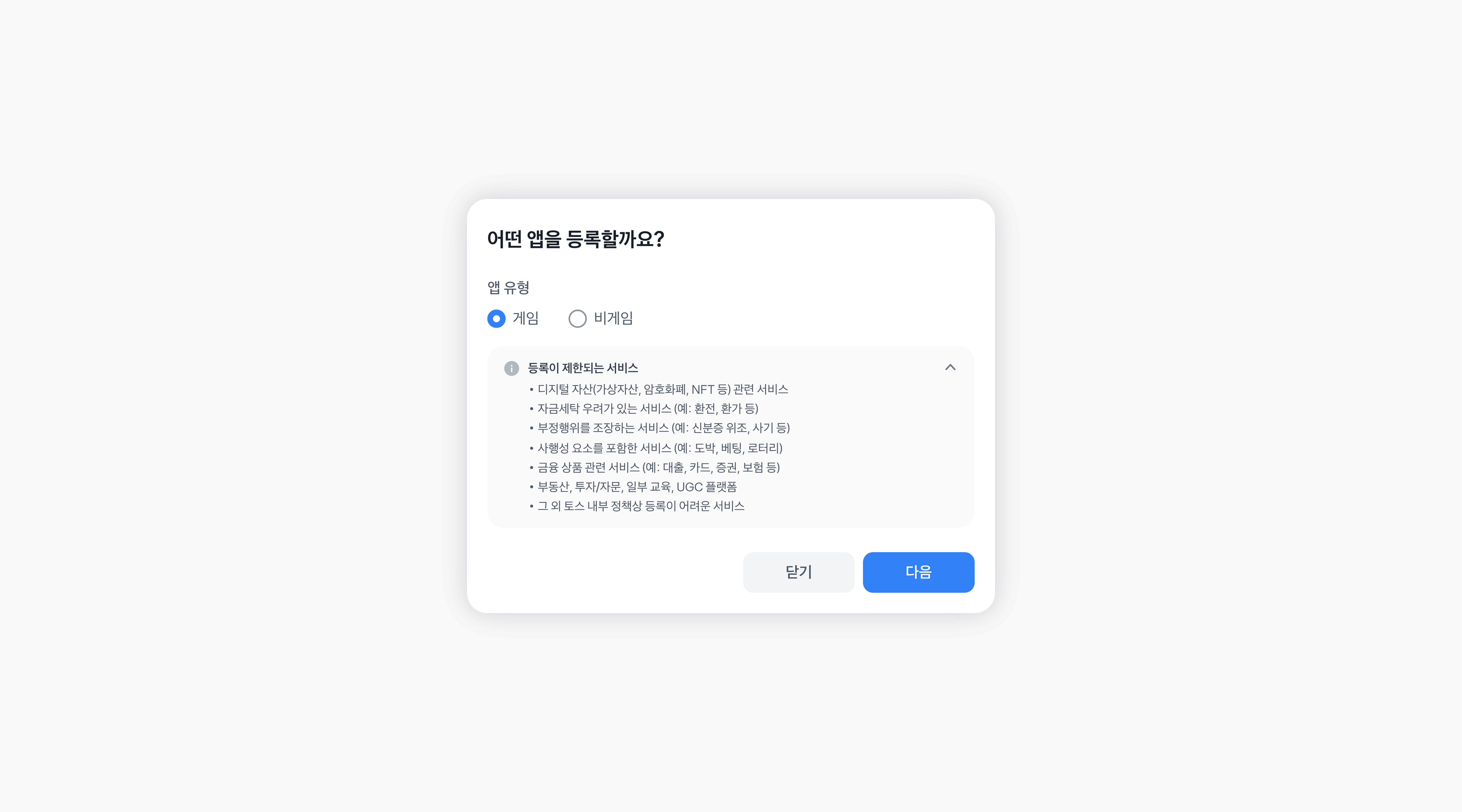 실제 개발이 완료되지 않은 앱이더라도 미리 등록할 수 있어요.