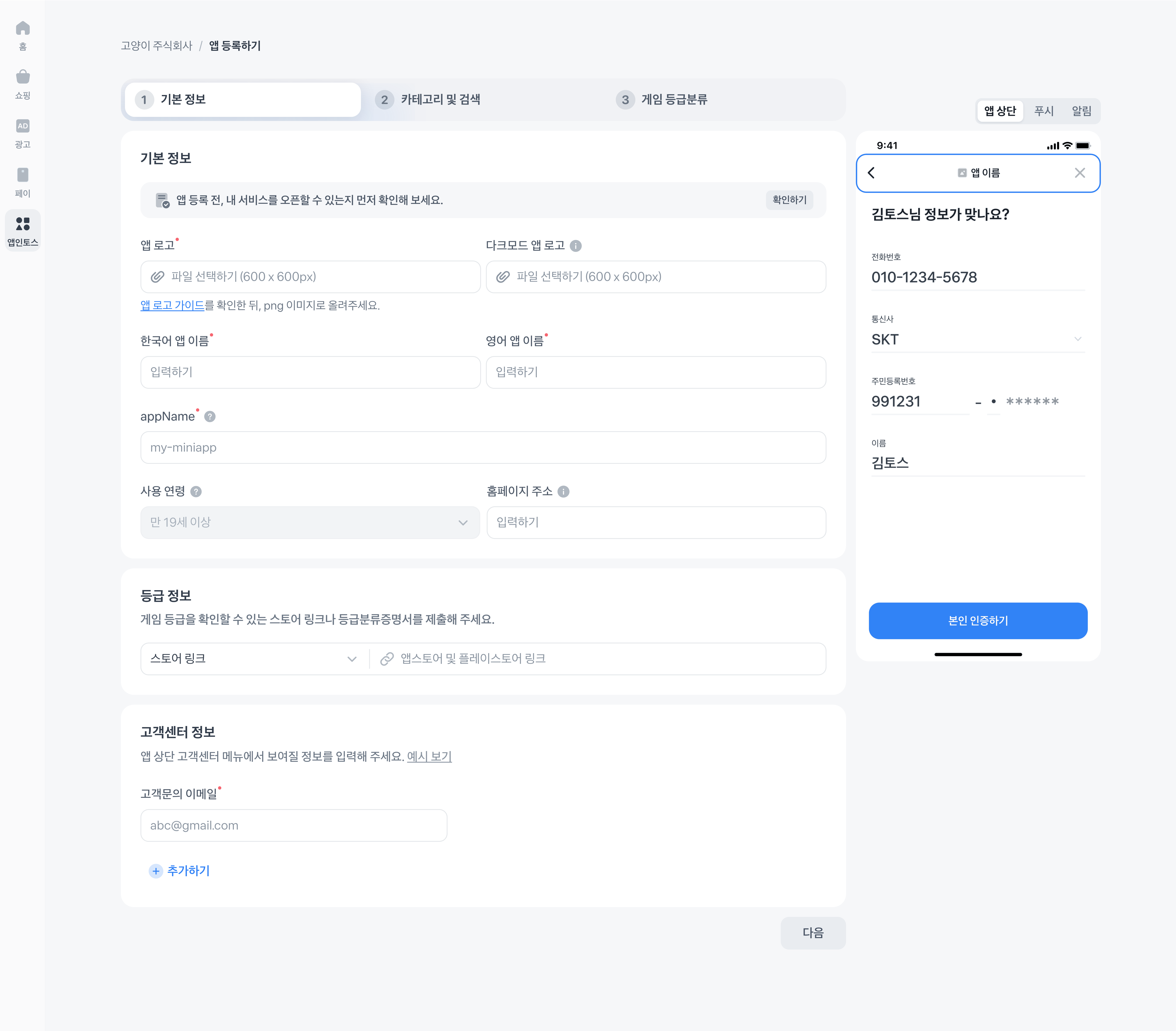 - 앱 정보 검토 과정에서 실제 미니앱 서비스와 카테고리가 상이할 경우, 먼저 알맞은 카테고리로 수정 후 별도로 안내해 드릴 예정이에요.