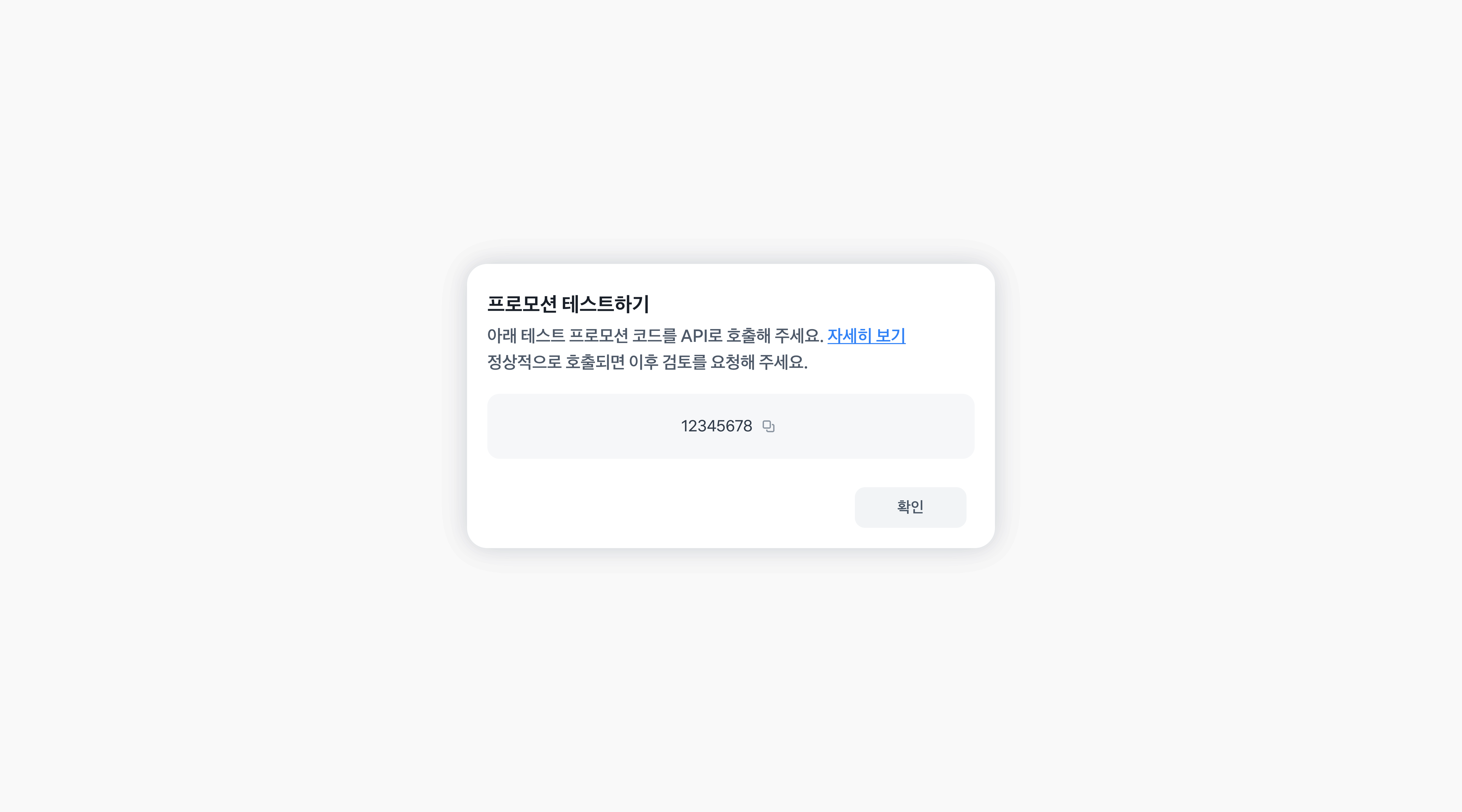 ‘테스트하기’ 버튼을 누르면 테스트 프로모션 코드를 확인할 수 있어요.