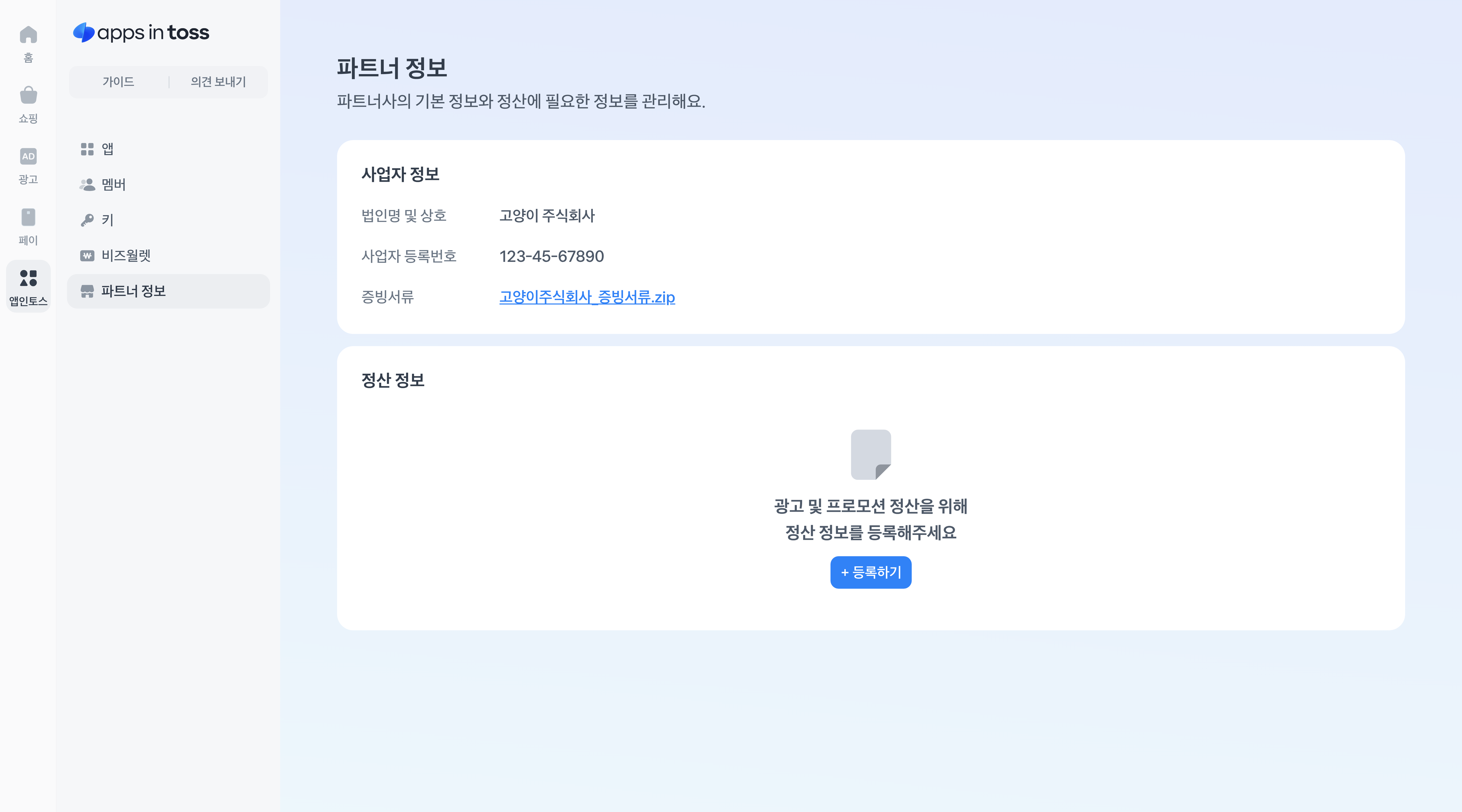 - 사업자 정보 등록 및 정산 정보 검토 (영업일 기준 2~3일 소요)