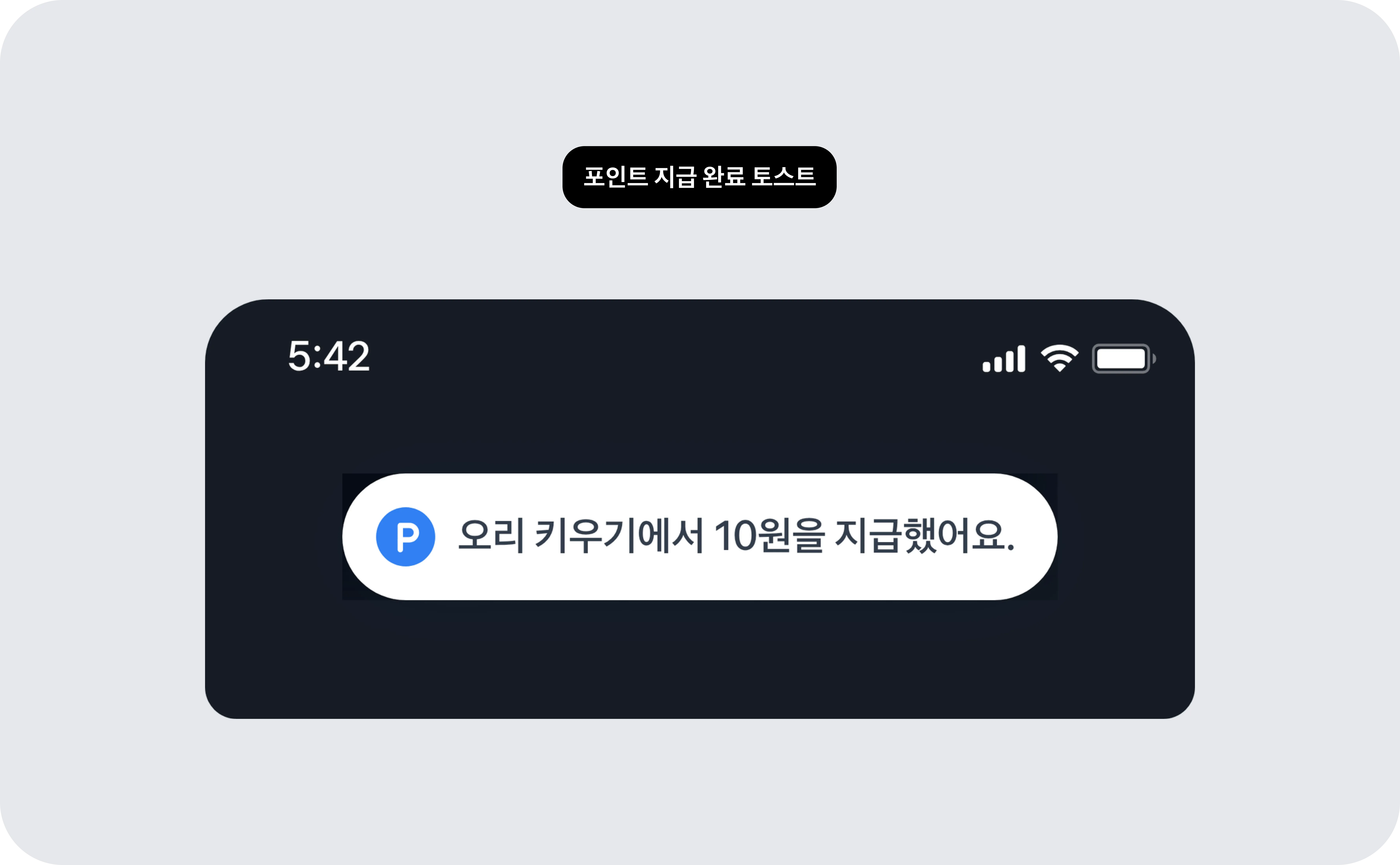 프로모션을 통해 토스 포인트가 지급되면, 유저 화면 상단에 토스트(toast) 알림이 표시돼요.