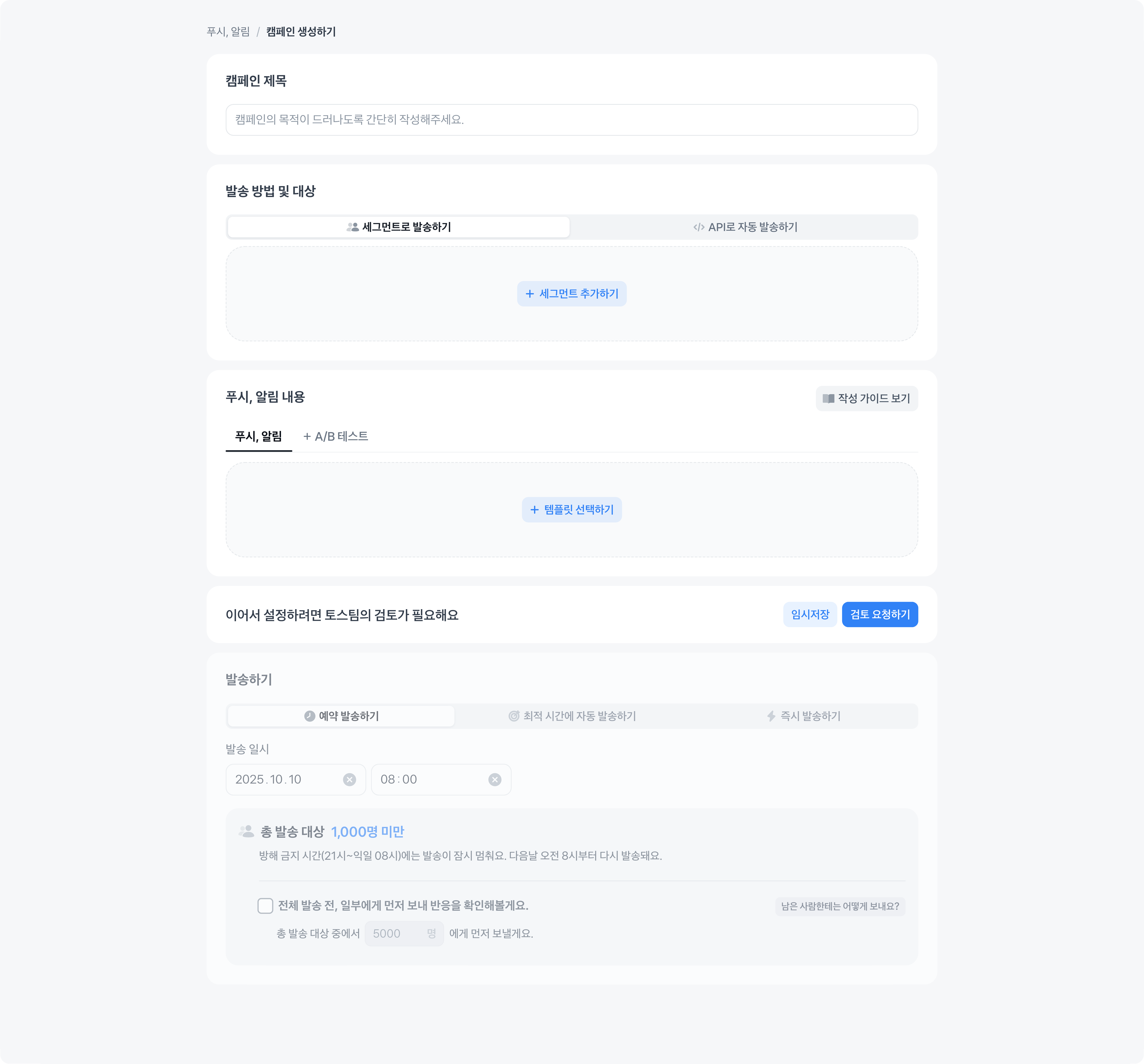 푸시, 알림 내용 승인 후 발송을 예약할 수 있어요.