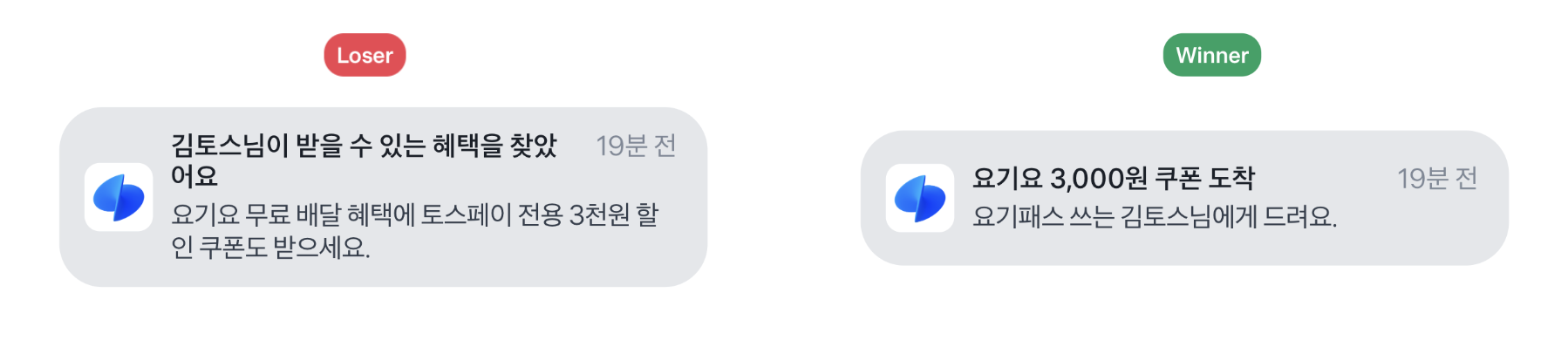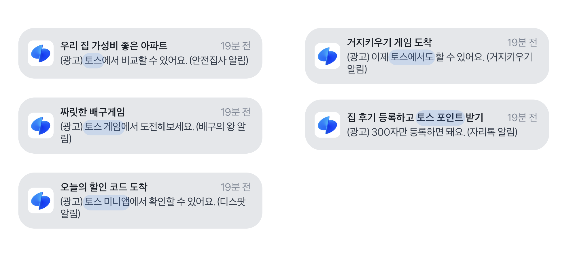 토스를 쓰는 모든 사용자에게 내 앱을 처음 소개한다는 마음으로 작성해주세요. 사용자는 이 푸시를 ‘토스’라는 금융앱의 맥락 안에서 받아들여요. 메시지가 토스답게 보이고, 자연스럽게 이해될 수 있도록 써주세요.