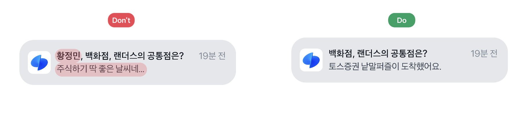 사용자는 미니앱을 토스 안의 서비스로 인식해요. 토스의 이름으로 나가는 만큼, 문장 속에서도 토스라는 맥락이 자연스럽게 드러나야 해요.