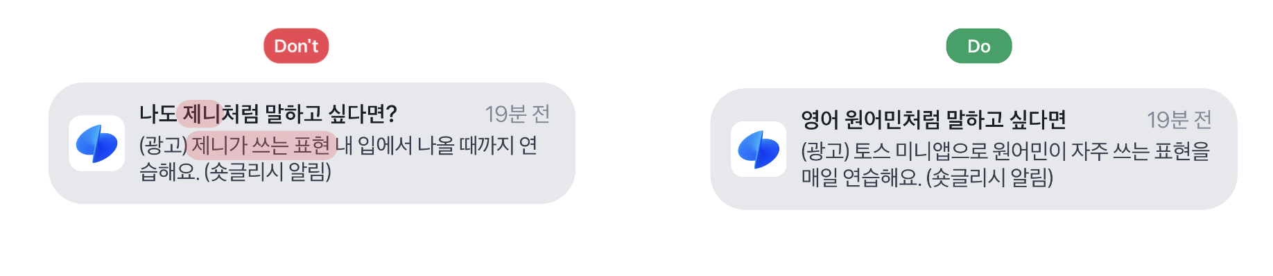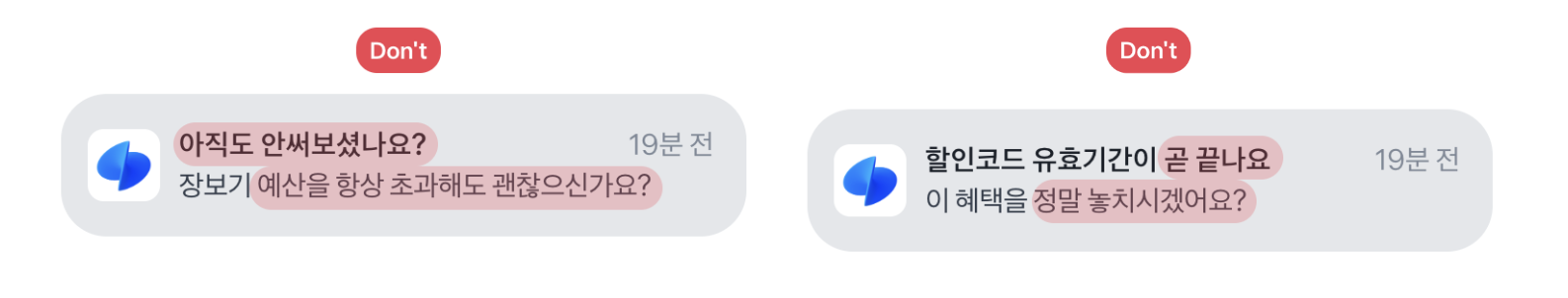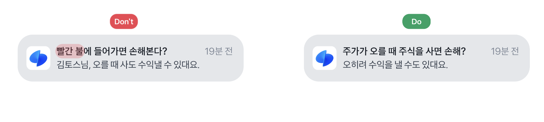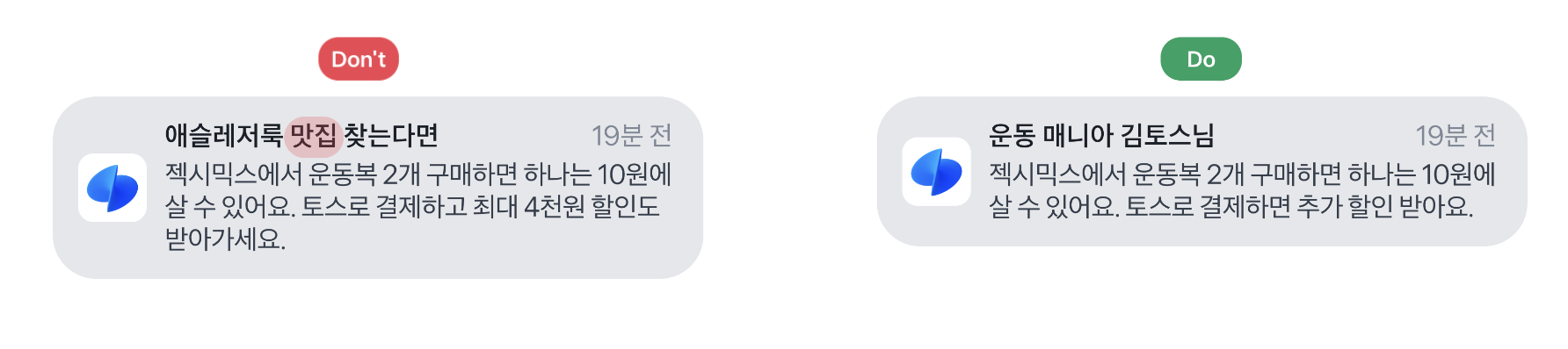 ⚡️ TIP 2. 민감한 서비스의 사용을 유도하는 뉘앙스를 조심해요.