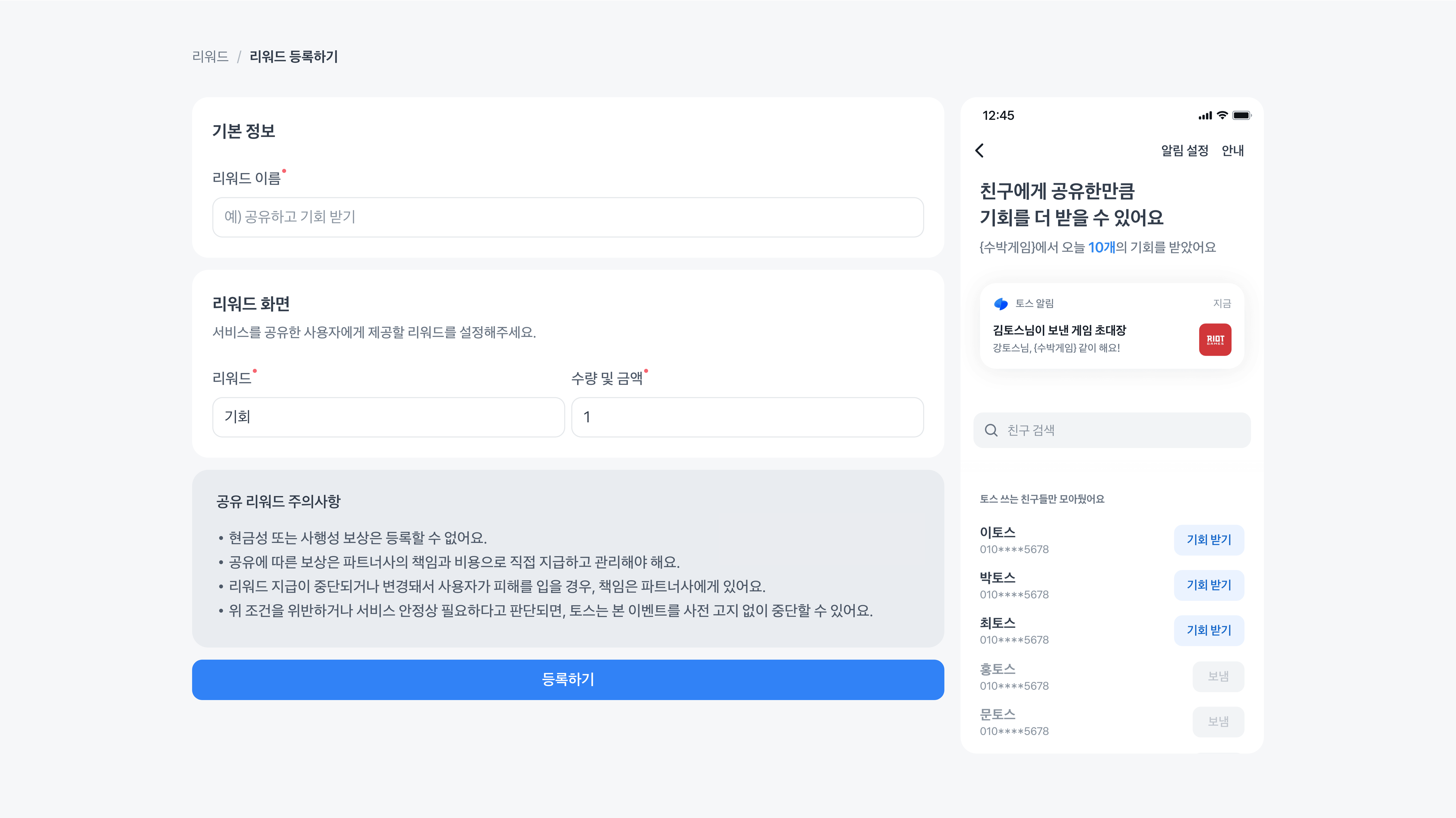 공유 리워드 등록하기