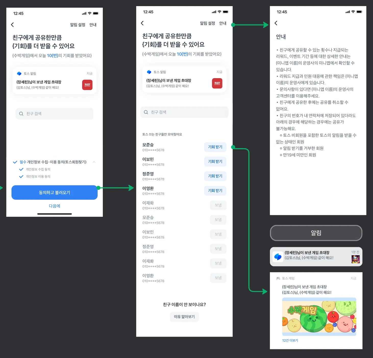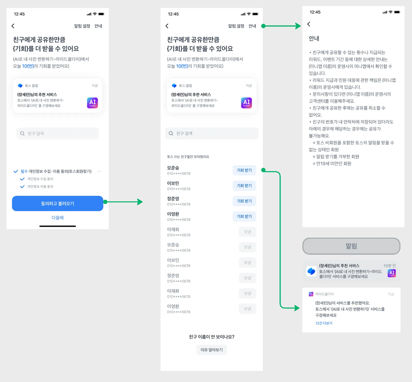 사용자가 친구 초대를 통해 리워드를 획득할 수 있어요.