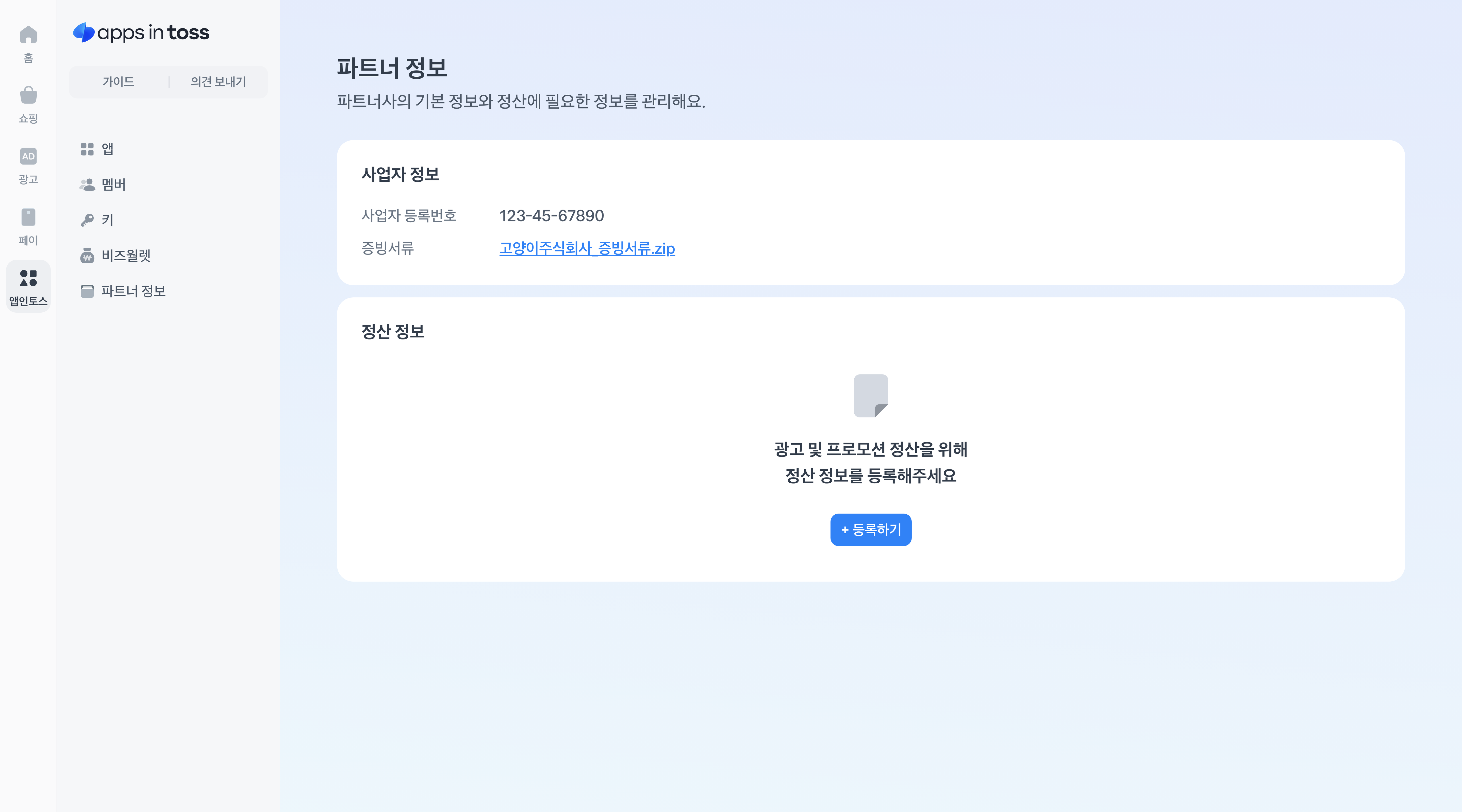 정산을 받으려면 아래 경로에서 정산 정보를 등록해야 해요.